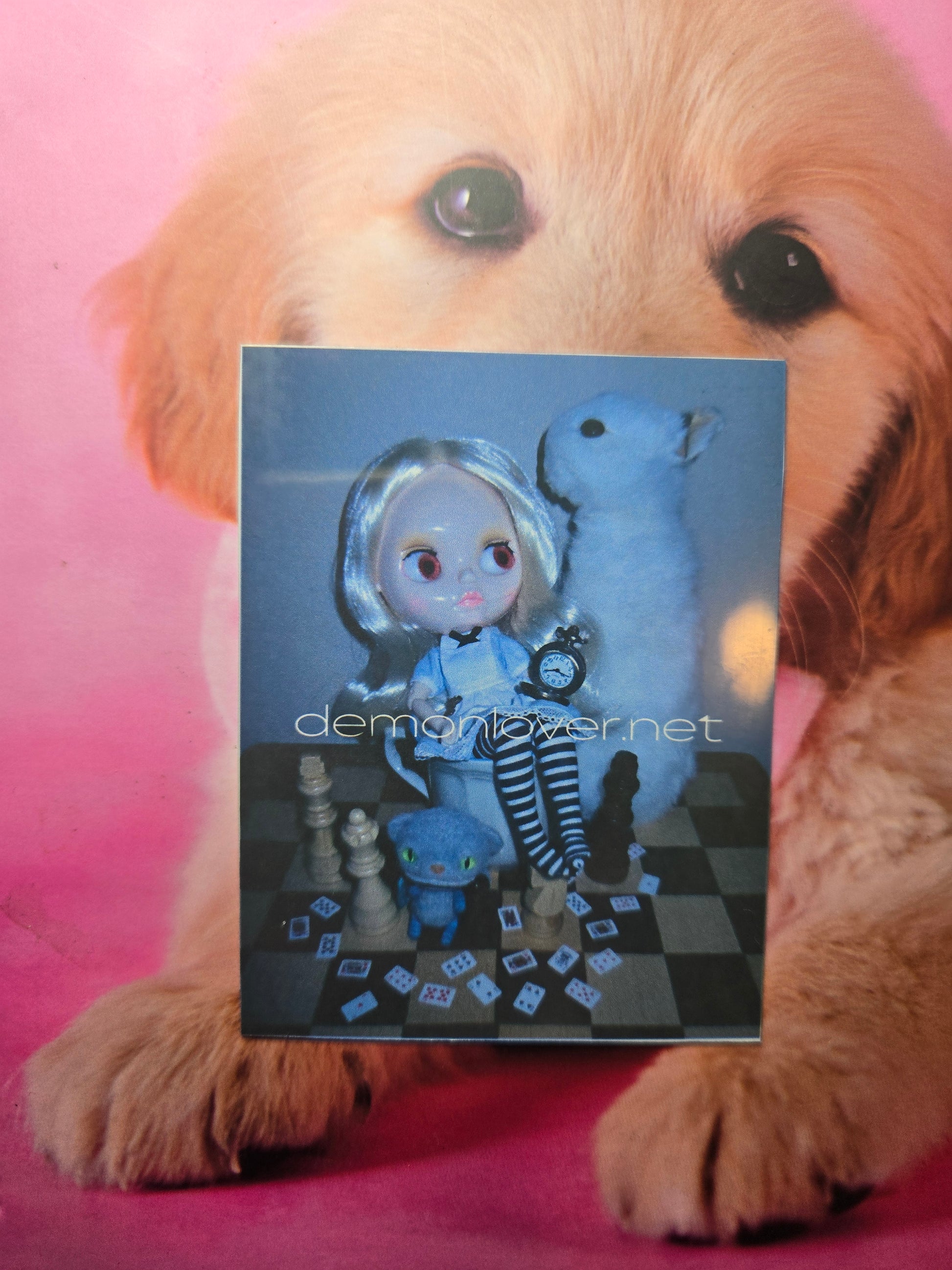 3 1/4 by 2 1/2 inch magnet of my Alice in Wonderland Blythe doll photography with logo